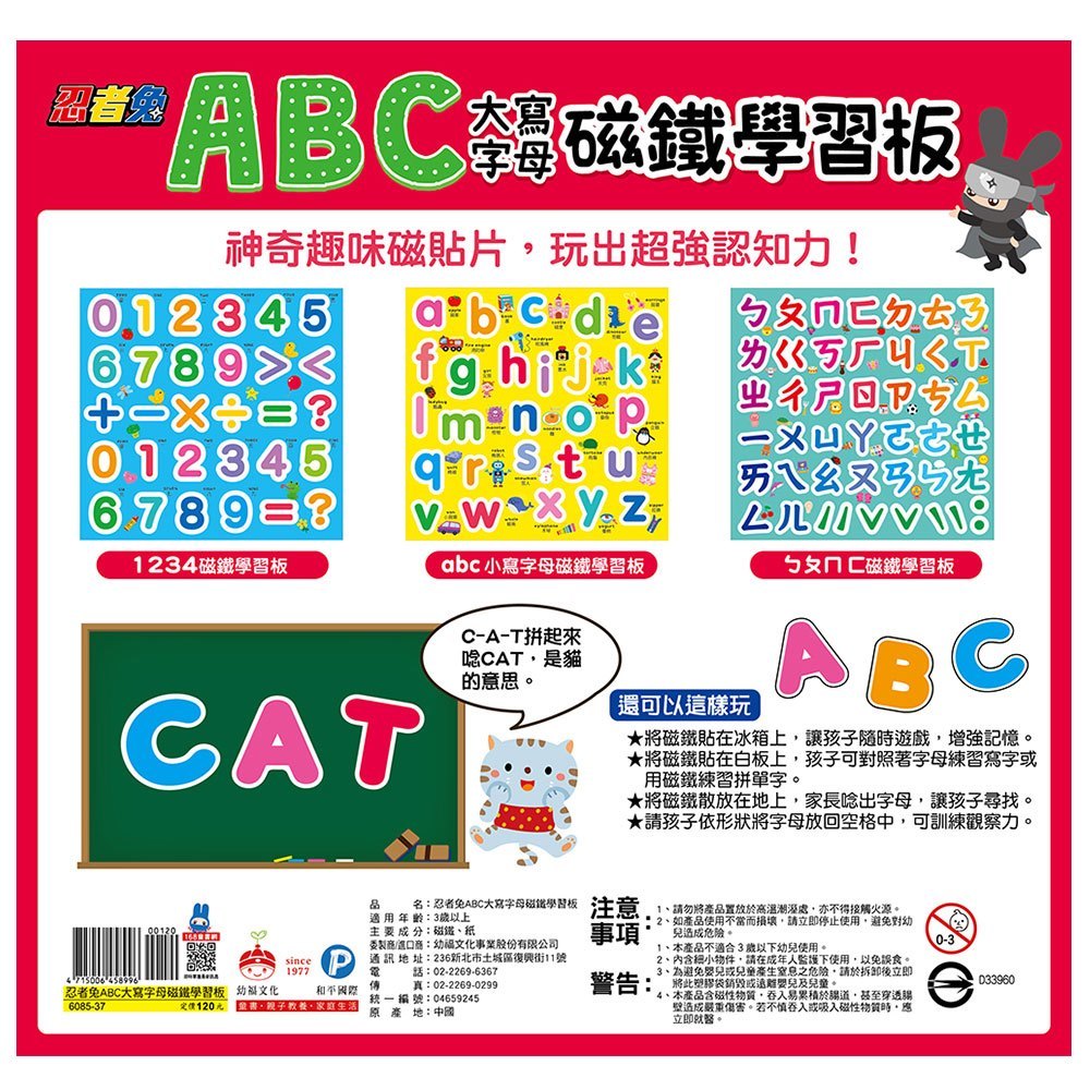 | ■商品簡介 孩子在學習基礎認知時,最重要的就是好玩、多聽、多看、多唸。本產品設計26個英文字母磁鐵,讓孩子在反覆遊戲的過程中,自然而然記住字母,並逐漸累積,除了學習板上的英文單字外,家長可再幫助孩子延伸學習更多的詞彙,培養英文語感。此外,還可搭配《忍者兔abc小寫字母磁鐵學習板》一起遊戲,同時認識相同字母的大寫與小寫,熟悉之後,便能輕鬆運用,有助於單字的認讀。 在必須重複使用學習教材的情形下,磁鐵會是家長準備給孩子的良好教具。因為磁鐵輕巧,方便攜帶且耐用不易損壞,到任何地方都可拿出來玩,如此一來,孩子就可隨時邊遊戲邊學習,認知能力自然會提升。
