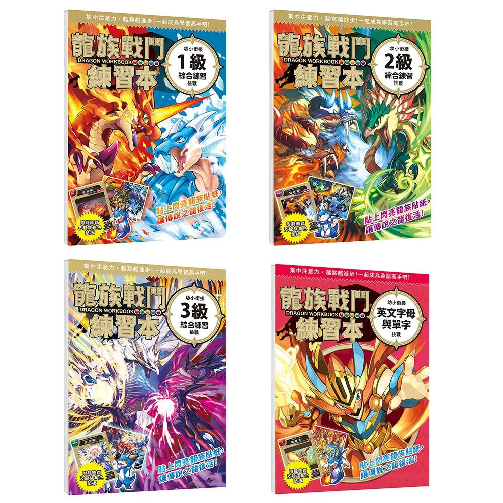 ■本書特色 ★有超酷的龍登場,是讓孩子可以快樂學習綜合科目的練習本。 ★每完成一回練習,就能貼上一枚貼紙,最後會完成一幅龍的圖片。 ★解題越多,收集到的龍就越多,讓孩子想接著解題,自然而然養成學習習慣。 ★共36張龍族召喚貼紙,可讓5隻強大之龍復活! ★閱讀「龍圖鑑」及「龍族的祕密」,可認識每隻龍的特色與絕招! ★附龍族角色墊板,每冊圖案不同,可用來收藏或書寫時墊在紙下使用。 ★本系列之「綜合練習挑戰」分為3級,孩子可依難易度循序漸進的學習。