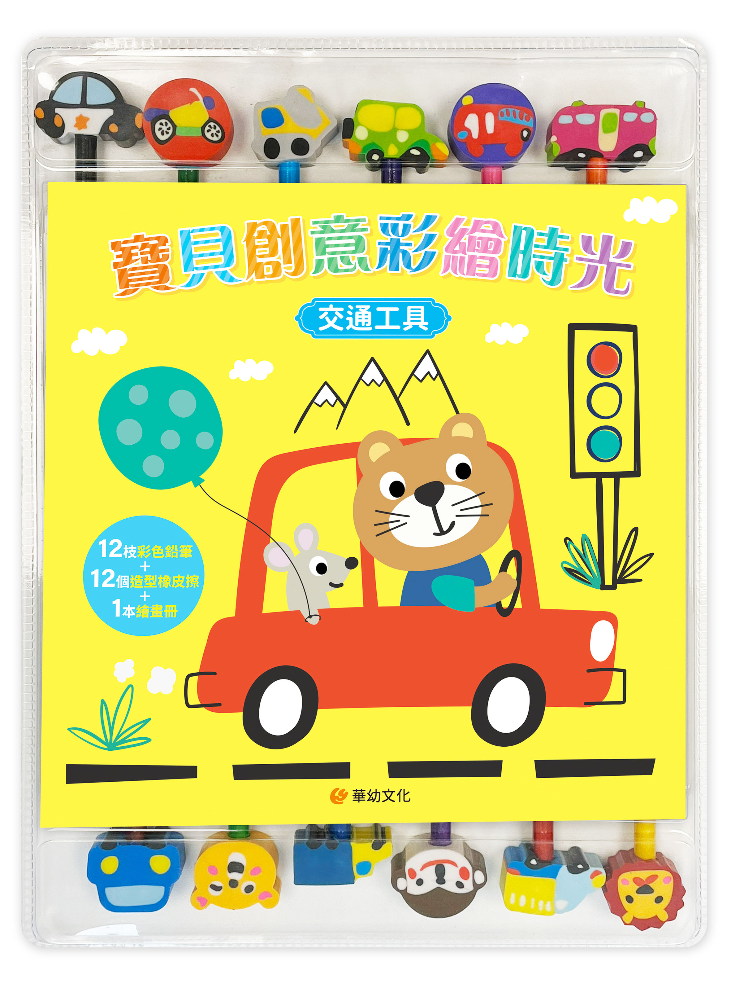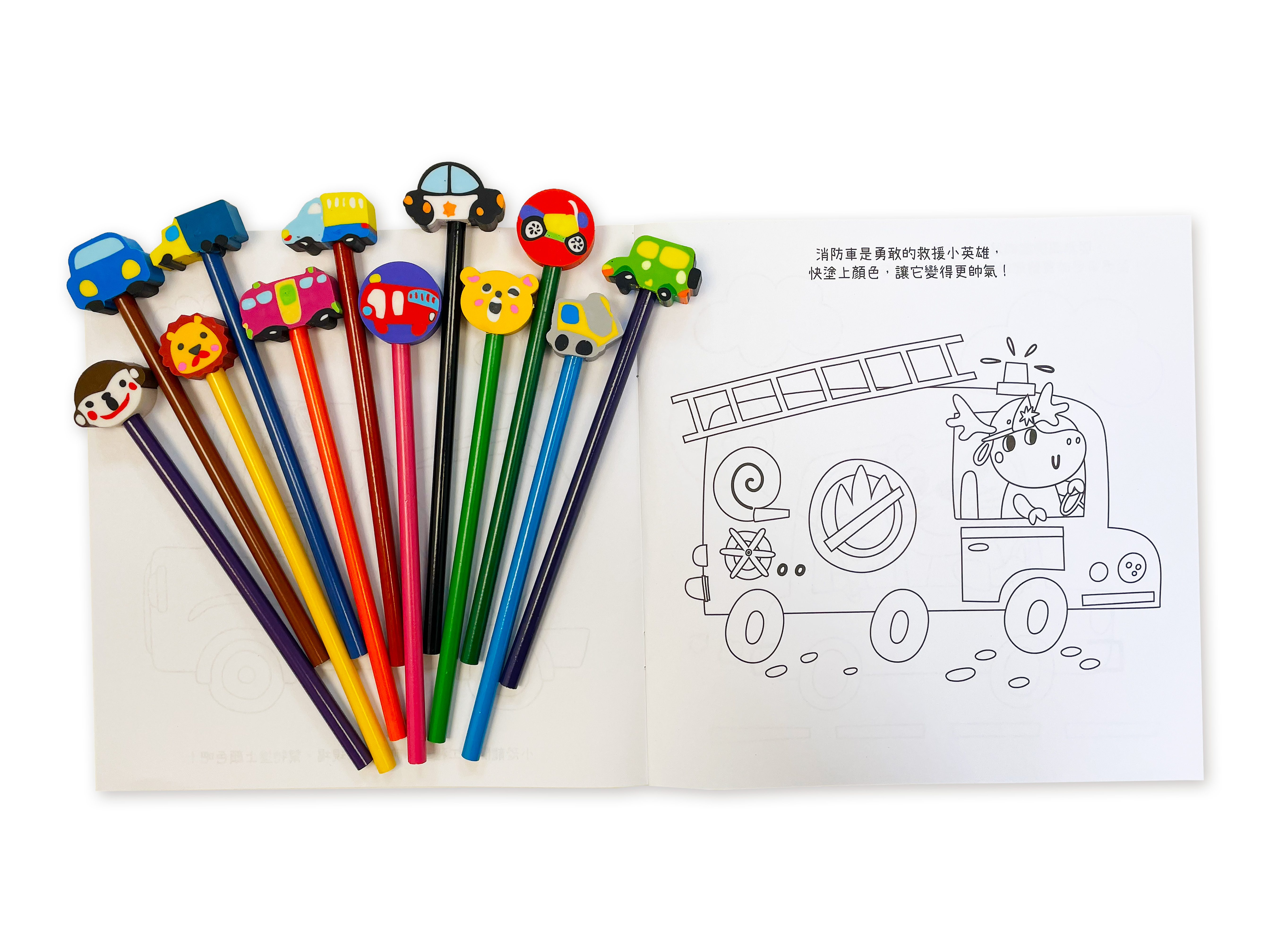 本產品專為喜愛交通工具與繪畫的孩子設計,多種交通工具插畫,線條清楚、畫面適當留白,孩子可依照自己的想像,為交通工具上色、裝飾、再創作。更貼心的是,產品一次附上12枝色鉛筆與12個造型橡皮擦,準備好削鉛筆機,就能立刻開始繪畫。