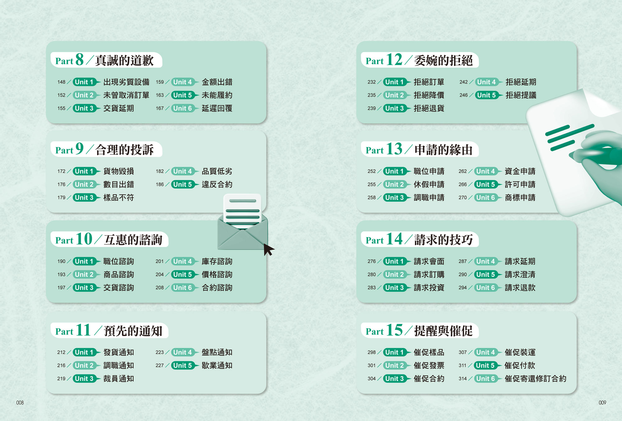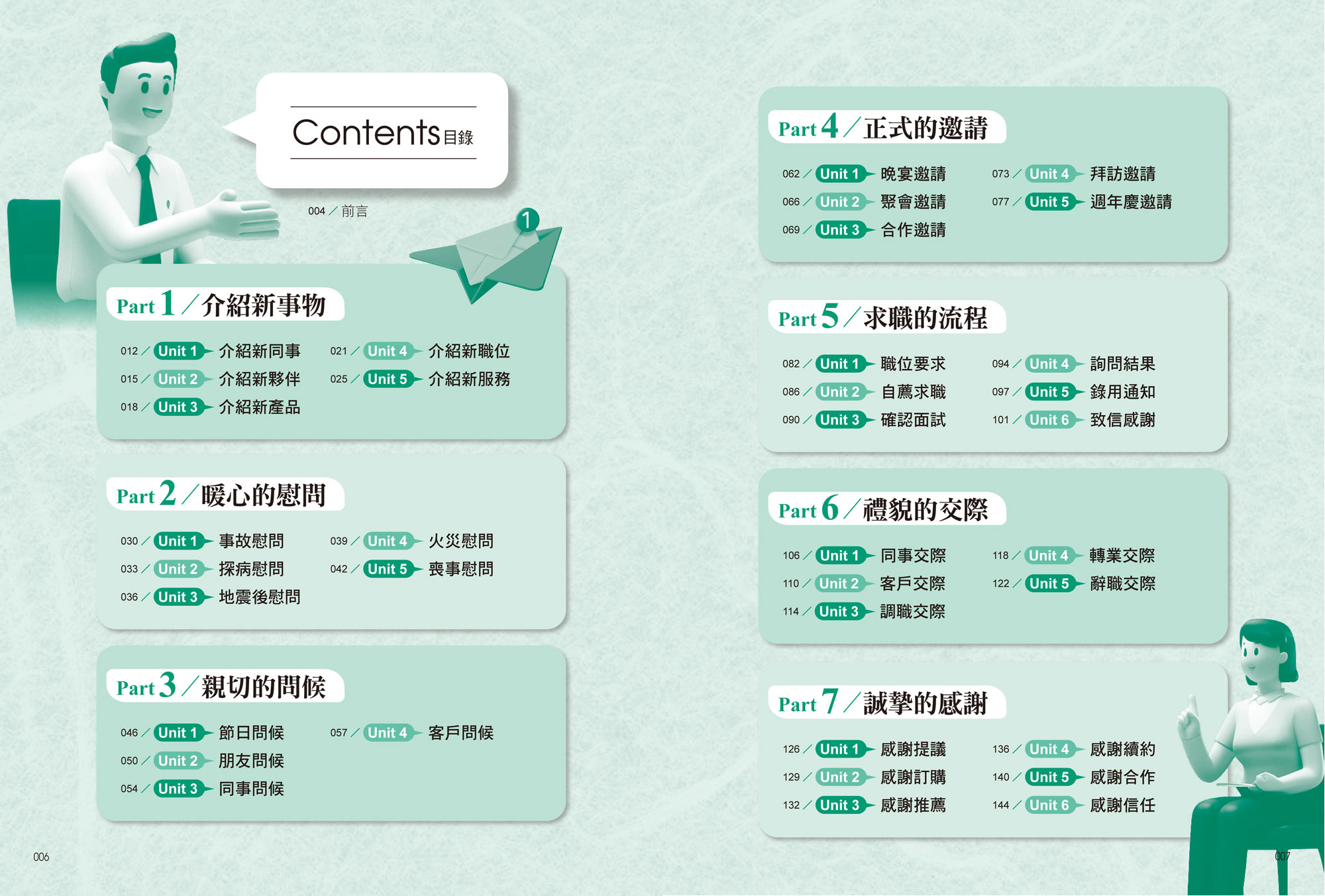 許多人撰寫信件時僅著重在傳達自身的想法,沒有考慮到收件人的感受,往往一不小心就踩到對方的地雷!這本書不僅提供專業的英文E-mail文法解析,同時詳細說明書寫各類E-mail的注意細項,讓你輕鬆避開信件寫作的盲點,用文字給對方留下溫暖的印象!