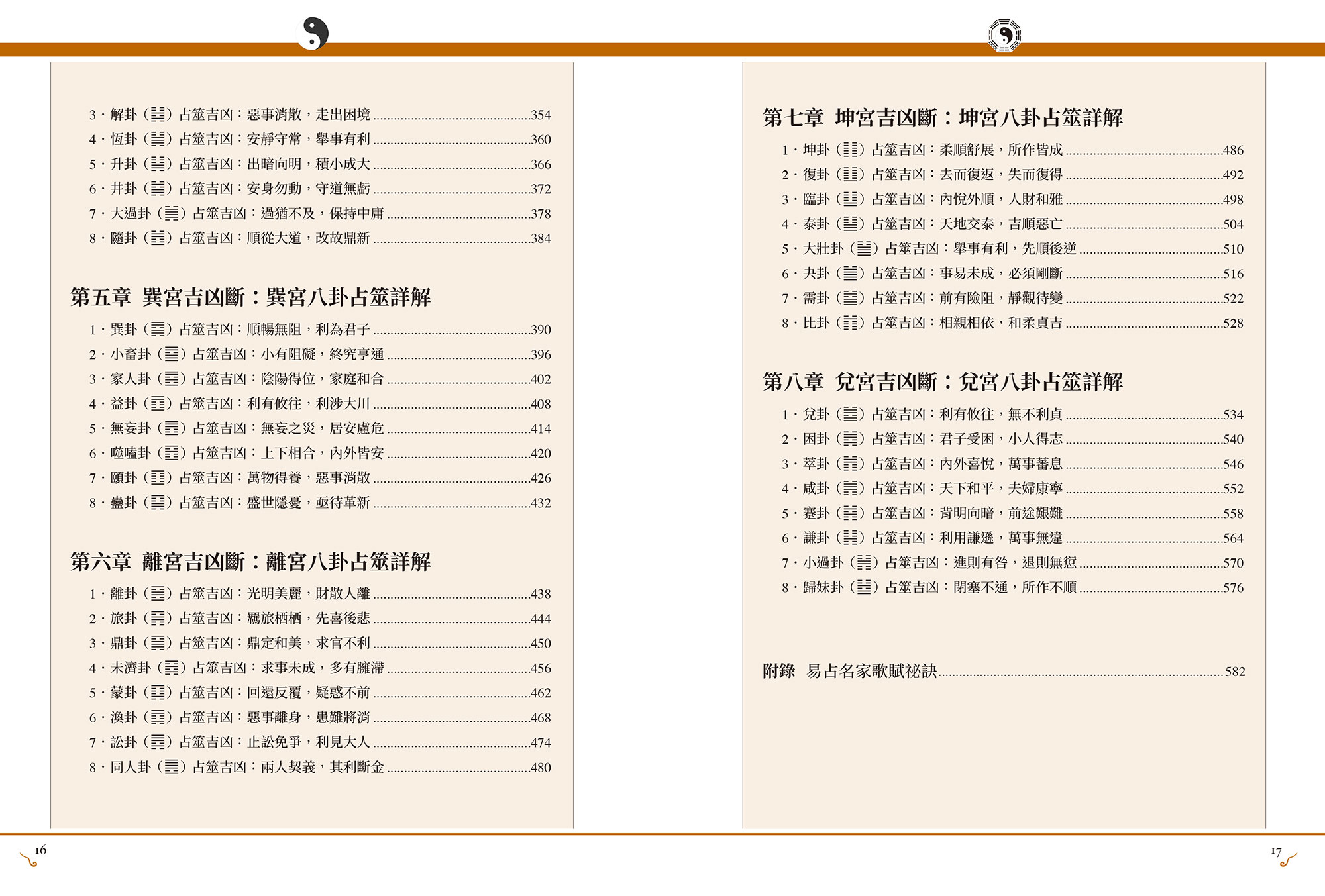 ★這本書在六十四卦辭爻辭的基礎上,對婚姻、求財、疾病、尋找、求官、收成等方面的吉兇作了具體判斷,方便我們對號入座。