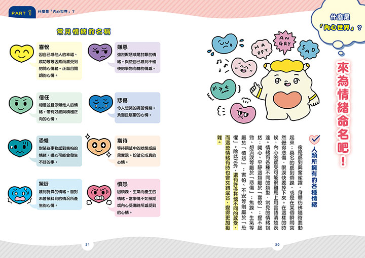 ■商品簡介 孩子的情緒,就像五顏六色的調色盤,多樣又複雜, 孩子每天的心情都在變化,就算平時開開心心,偶爾也會不安或是低落。其實,他們只是需要一點時間,跟自己的「心」好好相處。 .PART 1 什麼是「內心世界」? .PART 2 感受到負面情緒時的自我心理照顧 .PART 3 如何運用正面情緒讓自己變得更好 學會與看不見的內心世界相處,除了能夠讓孩子更了解自己,也能夠嘗試靠自己的力量度過各種情緒風暴。在青春期前就先學會處理情緒,預先建立維持心理健康的機制,可以讓孩子在將來面對更多挑戰時,能有足夠的能力保護自己的內心。即使是跌跌撞撞的青春期,也可以讓孩子懂得自我照顧,勇敢去體驗精彩人生! 暖心推薦(按姓氏筆畫排序)
