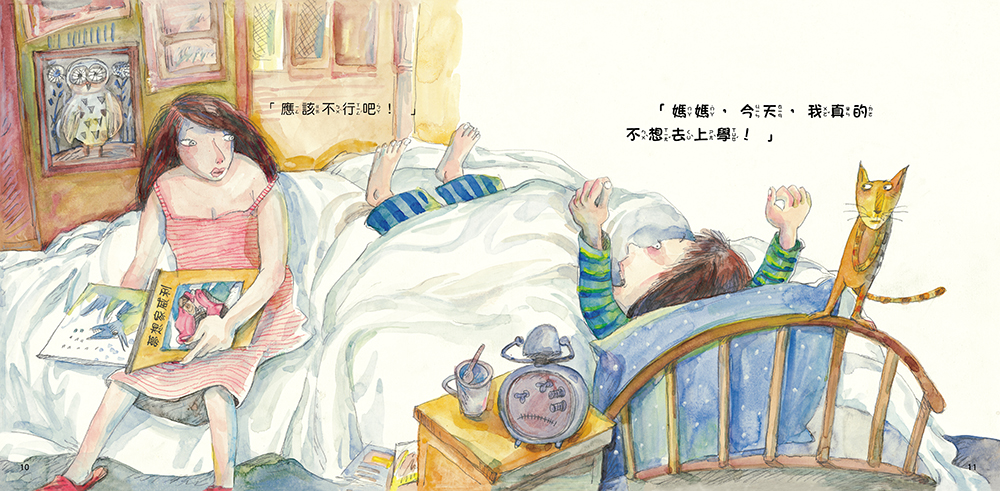 仔細看完內容後,你會發現,露西在想像的同時,似乎已經隨著平常的時間換好衣服、吃完早餐……所以,露西今天到底有沒有去上學呢?